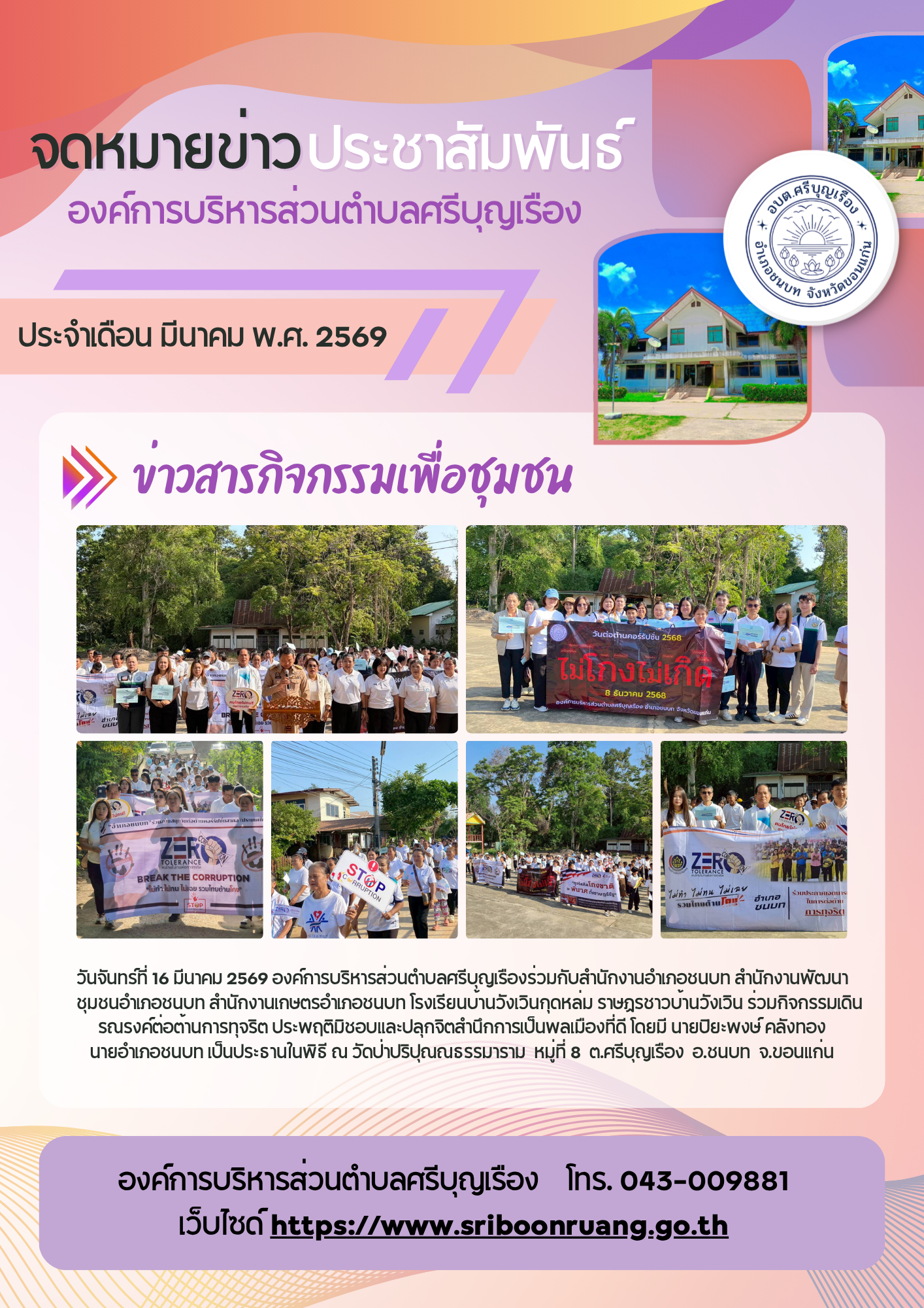 วันที่ 16 มีนาคม 2569 ประชาสัมพันธ์รณรงค์ต้านการทุจริต ประพฤติมิชอบและปลูกจิตสำนึกการเป็นพลเมืองที่ดี